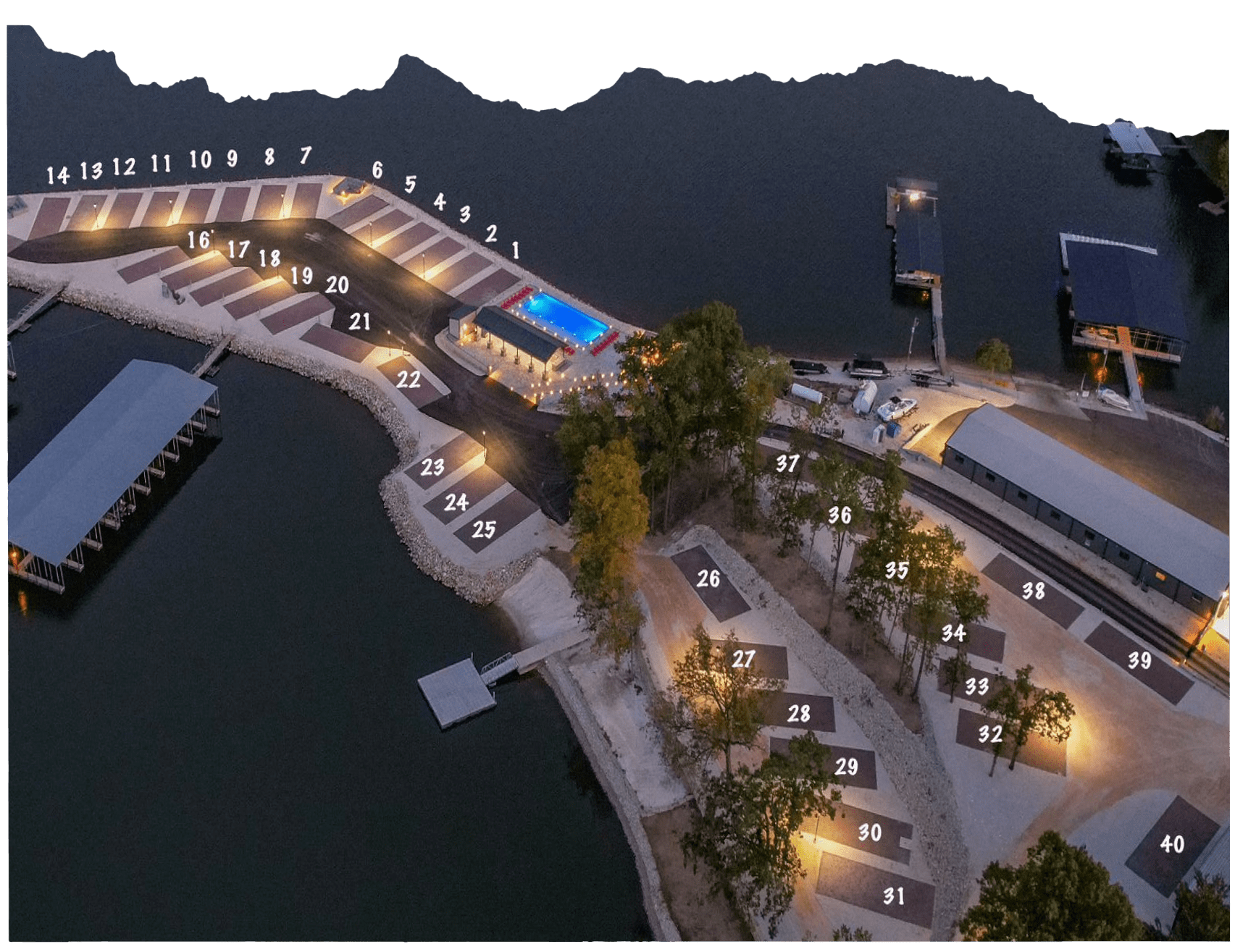 This map displays the layout of our park. Use this map to plan your stay, and locate the amenities you wish to enjoy during your visit.
